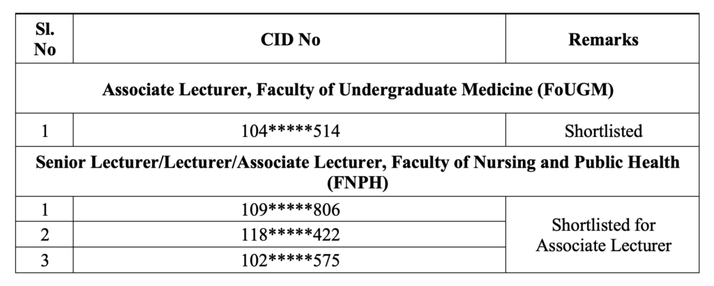 The Khesar Gyalpo University of Medical Sciences of Bhutan (KGUMSB) is pleased to notify the list of short listed applicants for the selection examination and interview, as follows: