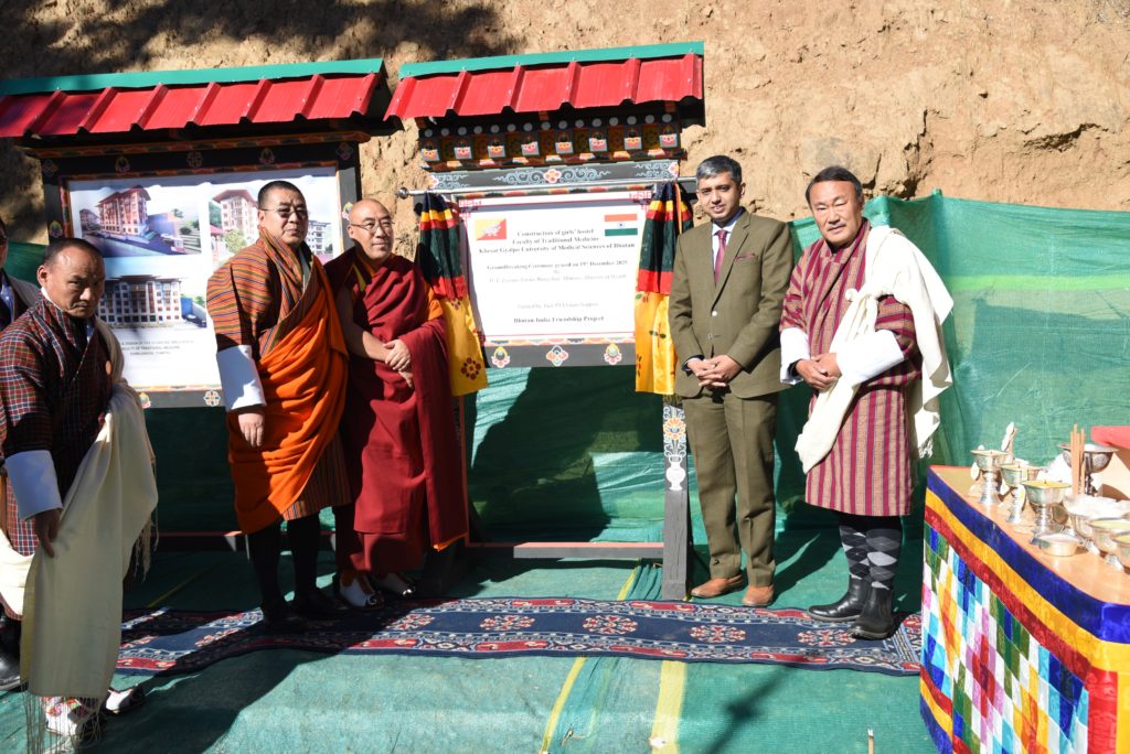 19th December 2025: The groundbreaking ceremony for the construction of a Girls’ Hostel for the Faculty of Traditional Medicine (FoTM), Khesar Gyalpo University of Medical Sciences of Bhutan (KGUMSB), was held today at the FoTM campus in Kawajangsa. The ceremony was graced by the Hon’ble Health Minister, Lyonpo Tandin Wangchuk, Venerable Tshogki Lopen of Dratshang Lhentshok, . Tthe Deputy Chief of Mission, Embassy of India, , executives from KGUMSB, Ministry of Health, Ministry of Infrastructure and Transport, Royal University of Bhutan, Menjong Sorig Pharmaceuticals Corporation Limited and Local Government Officials along with other invited guests, also attended the event.